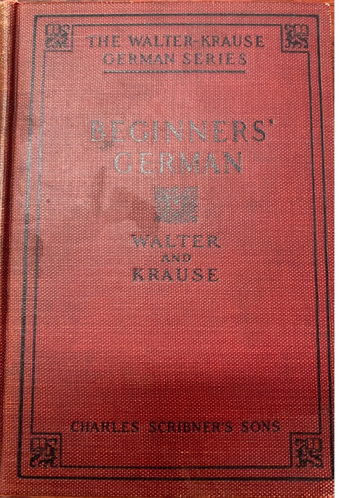 This is a German language primer textbook, published by "Charles Scribner's Sons" circa 1911. The cover is red leather with black detailing and lettering around the center and edges. In the center of the cover is a black eagle, representing the insignia of the German Empire. The title of the book is "Beginners' German." German language primers of this kind were regular portions of school curriculum around the turn of the century and were often victims of book burnings during times of anti-German sentiment c. the First World War. This content can be used with the following standards: SS-WH.9-12.26: Iowans Impact World History The instruction of the German language in American public schools suffered a large backlash during the first and second World Wars, when anti-German sympathy was on the rise in much of the world. This item can be used to educate students on how Iowa contributes to larger global discussions on education, politics, and language. For any uses other than instructional resources, please check with the organization that owns this item for any copyright restrictions. |