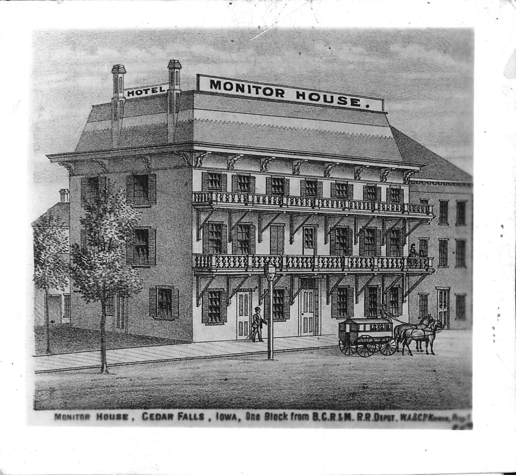 The Monitor House, Cedar Falls, Iowa. Established before 1873; burned down 1885. |