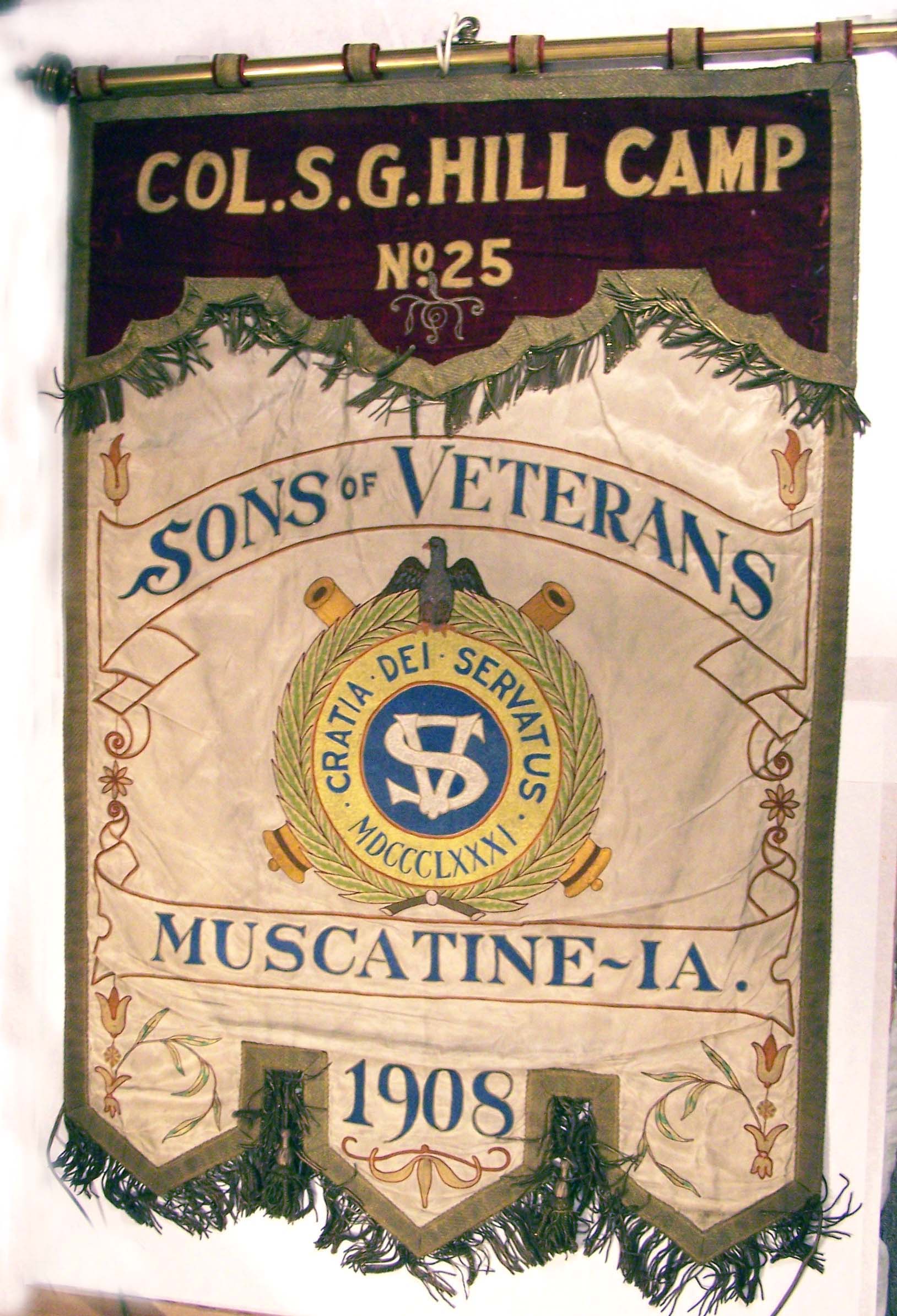 This banner was created in 1908 by a group known as the Sons of Union Veterans of the Civil War. The "Sons of Veterans" group was organized in 1881 to preserve the history of soldiers who fought for the Union during the Civil War. This ceremonial banner was used by the Col. S. G. Hill Camp, which was Muscatine's branch of the Sons of Veterans. Content can be used with the following standards: SS-U.S. 9-12.23 Iowans Influence U.S. History in a lesson on Iowans in the Civil War and the organizations formed around them. For any use other than instructional resources, please check with the organization that owns this item regarding copyright restrictions. |