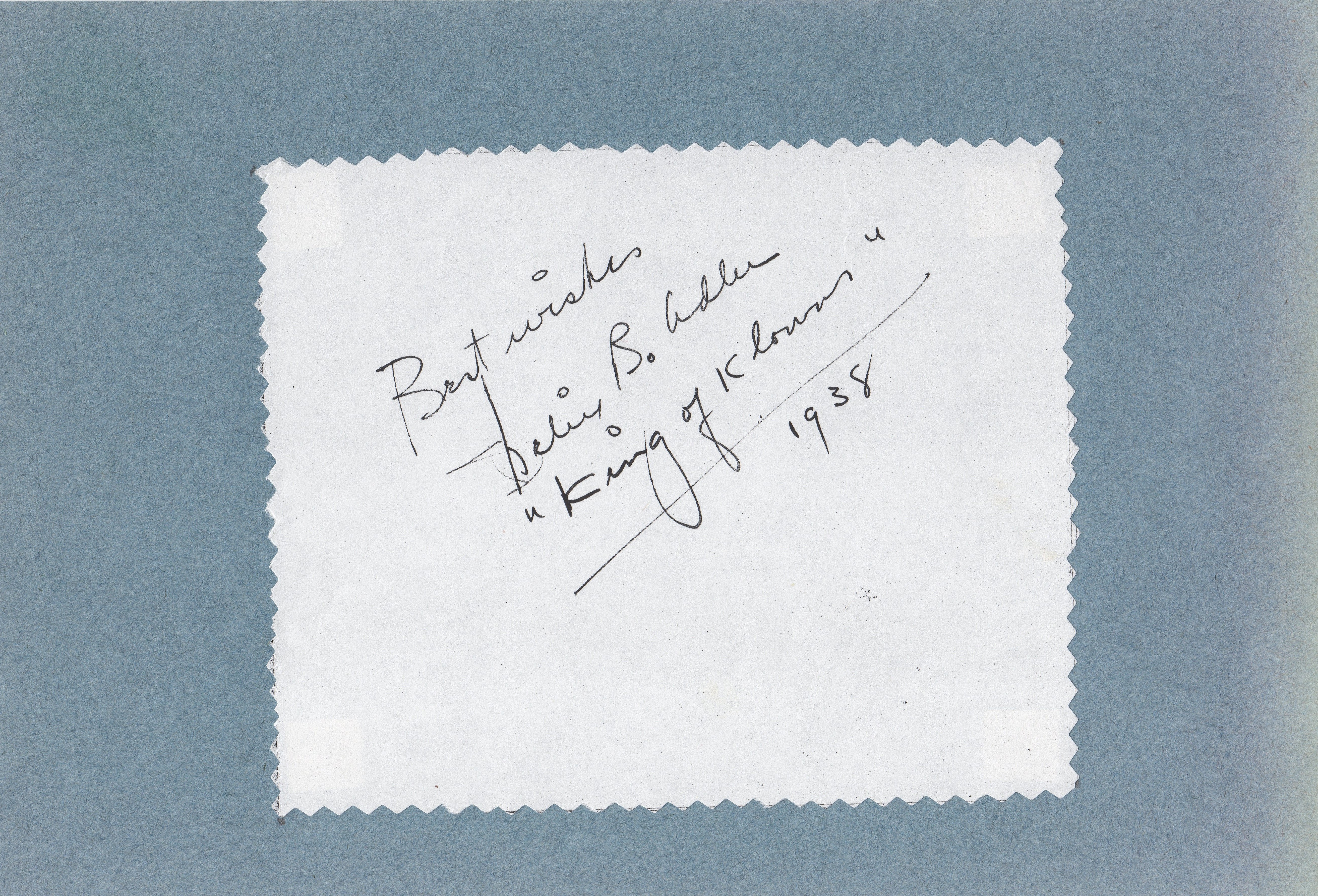 Frank "Felix" Adler signed this piece of paper in 1938. The writing reads: "Best Wishes Felix B. Adler 'King of Clowns' 1938." Frank Adler, who later used the stage name Felix Adler, was born in Clinton, Iowa on June 17, 1895. At the age of 15, Adler began working as a comedian around the Clinton area. Sometime around 1914, Adler joined Ringling Bros. and Barnum & Bailey circus. Shortly after, however, Adler left the circus and served in the Army during World War I. In 1919, Adler returned to the circus and became "Funny Felix the Clown." During his career, Adler appeared in movies and TV shows including The Greatest Show on Earth (1952), The Jackie Gleason Show, Person to Person, Howdy Doody Show, Super Circus and Martin Kane Private Eye. He was the first American clown on television. Adler also earned the nickname, "The Whitehouse Clown" for the many times he performed for United States presidents, including Warren Harding, Calvin Coolidge, and Franklin D. Roosevelt. In 1948. Adler married Amelia Irwin, who also was a circus clown. The duo became the first husband and wife circus clown team. The pair retired from the circus in 1959. Frank "Felix" Adler passed away on February 1, 1960 and was buried in Clinton, Iowa. To celebrate his life, the town of Clinton celebrates Felix Adler Day each June. Content can be used with the following standards: 3rd grade SS 3.28 Cultural Contributions in a lesson on entertainment in the early 1900s. For any use other than instructional resources, please check with the organization that owns this item regarding copyright restrictions. |
