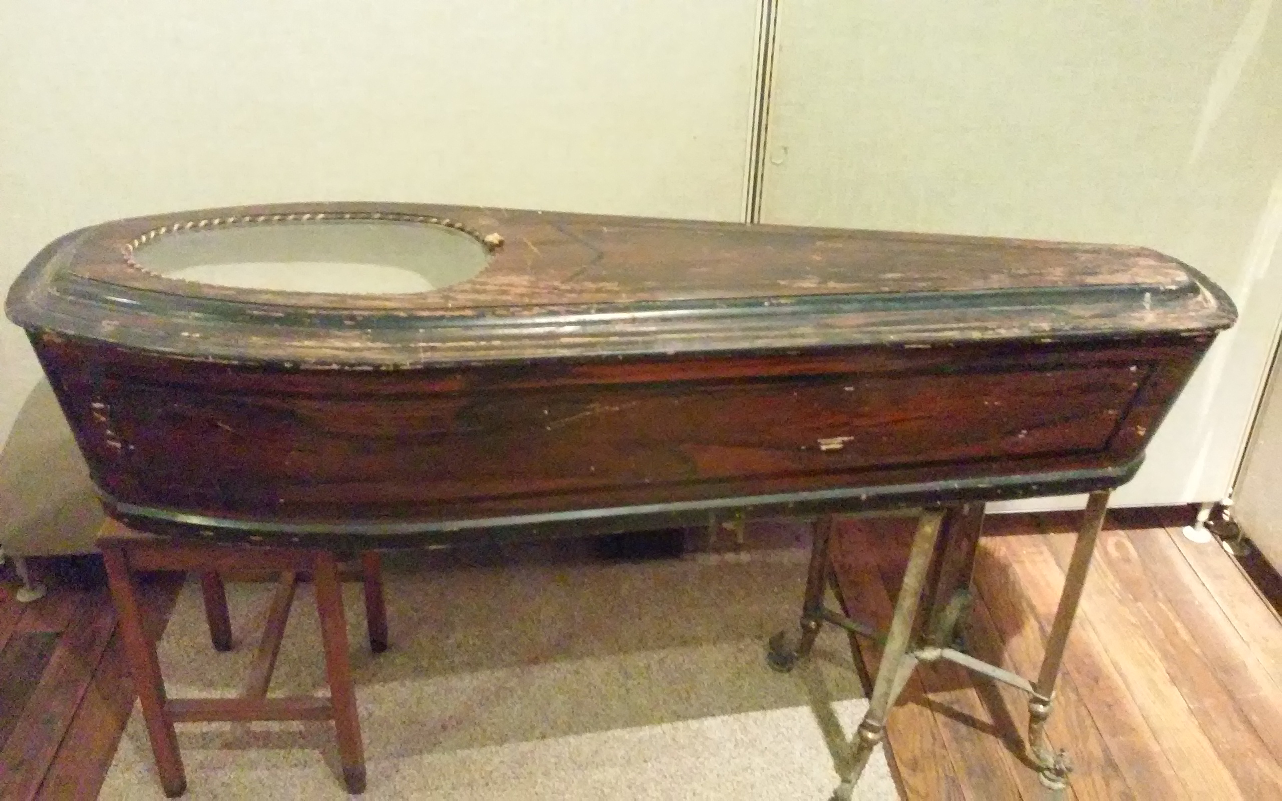 Child's coffins such as this one were built and sold by the Embalming Burial Case Company of Burlington, Iowa. The company was founded in Burlington in the late 1800s, and operated well into the second half of the 20th century. Content can be used with the following standards: SS Econ. 9-12.24 Iowa Impact Upon Economy in a lesson on late 1800s businesses of Iowa. For any use other than instructional resources, please check with the organization that owns this item regarding copyright restrictions. |