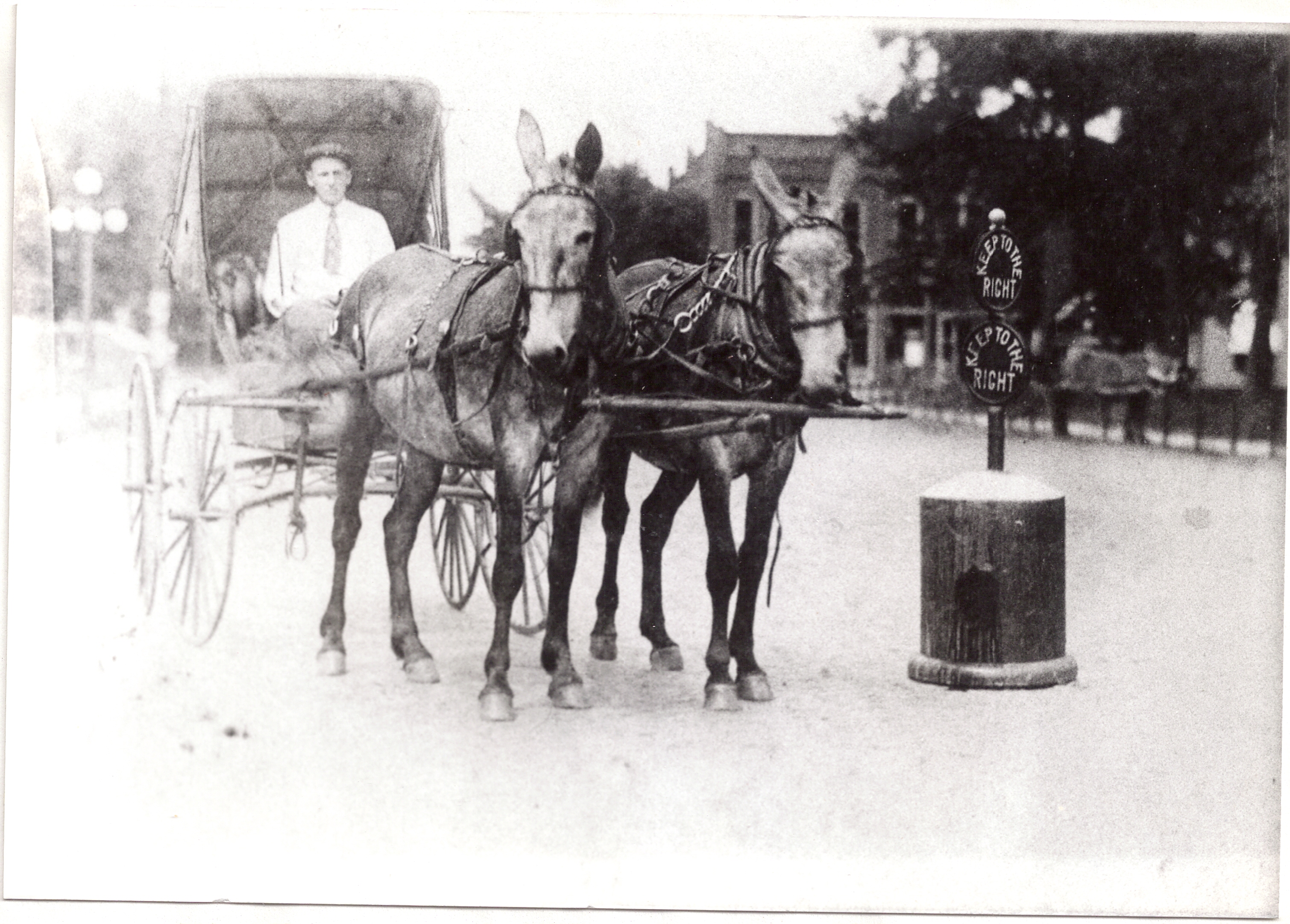 This photograph shows one of the street corners located near the town square in Mount Ayr, Iowa. The small sign located next to the mule-drawn carriage in the street states "Keep to the Right." Mount Ayr's street commissioner, Bird Gilliland, ordered and installed these signs in 1916. Content can be used with the following standards: 3rd grade SS 3.28 Cultural Contributions and 4th grade SS 4.26 Technological Changes in a lesson on transportation changes during the early 1900s. For any use other than instructional resources, please check with the organization that owns this item regarding copyright restrictions. |