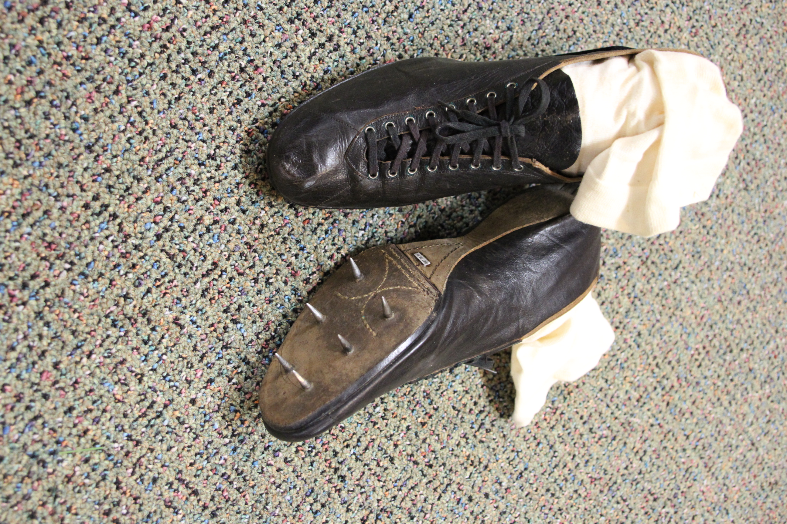 These track shoes were worn by George Saling during the 1932 Olympic Games held in Los Angeles, California. Saling, a resident of Corydon, Iowa, won the Gold Medal for the 110 meter high hurdles with a time of 14.6 seconds. Prior to racing in the Olympics, Saling attended for the University of Iowa and won the NCAA Championship for the 110 meter hurdles. Content can be used with the following standards: 3rd Grade SS 3.28 Cultural Contributions and SS-W.H. 9-12.26 Iowans Influence World History in a lesson on Iowan athletes. For any use other than instructional resources, please check with the organization that owns this item regarding copyright restrictions. |