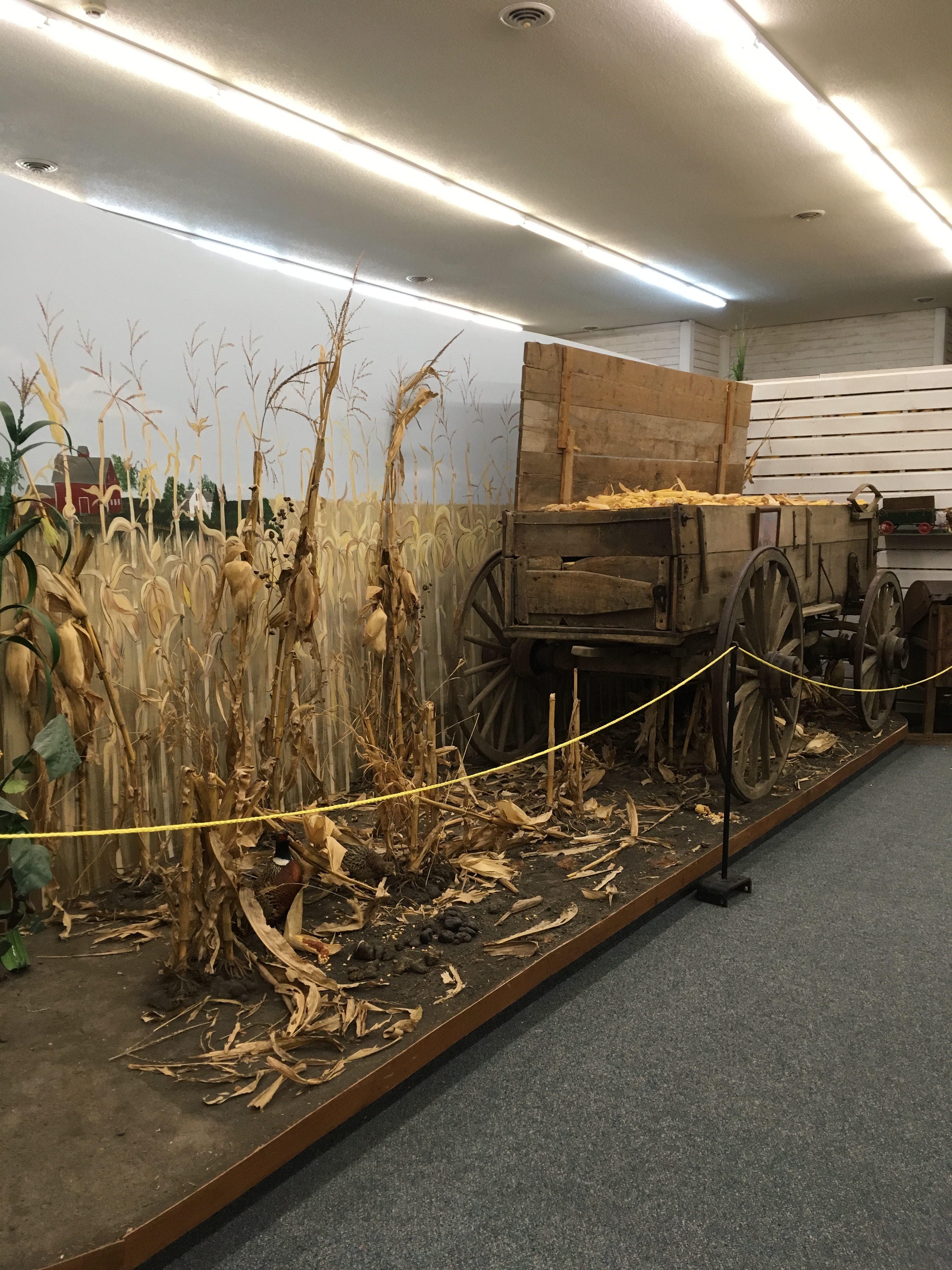 During the fall in Iowa, it is common to see combines and tractors out in the fields harvesting corn and beans. During the early 1900s, corn was handpicked by most Iowan farmers. With the help of a horse drawn wagon, farmers would walk along the row and pull the stock from the ground to deposit into the wagon. This process would continue until the whole crop is harvested. At this time, not all farmers were hand picking. With the invention of the horse powered corn picker, it helped farmers harvest more stocks at a time. The picture shown above is a display of 1900s harvesting located at the Grundy County Heritage Museum. For any use other than instructional resources, please check with the organization that owns this item regarding copyright restrictions. |