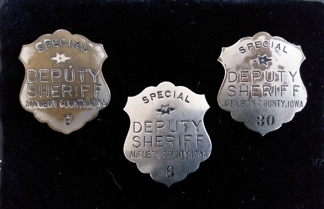 These badges were given to members of the Audubon County Militia, which was organized during World War II. On February 16, 1942, Audubon County Sheriff F. Clemmensen deputized six small town police and 23 civilians as deputy sheriffs "without compensation". They were to help in all of the duties of the sheriff and in guarding the properties of the people in Audubon County. The militia received a shipment of 65 rifles and 9 revolvers, ammunition and a box of deputy sheriff badges from the government to support their work. The militia disbanded in late 1944. Sheriff Clemmensen collected the guns, counted the bullets (none were missing), and relieved the squad of their badges. He wrote his final report December 5, 1944. Content can be used with the following standards: 8th grade SS 8.25 Iowa Government in a lesson on judicial systems and law enforcement in Iowa. For any use other than instructional resources, please check with the organization that owns this item regarding copyright restrictions. |