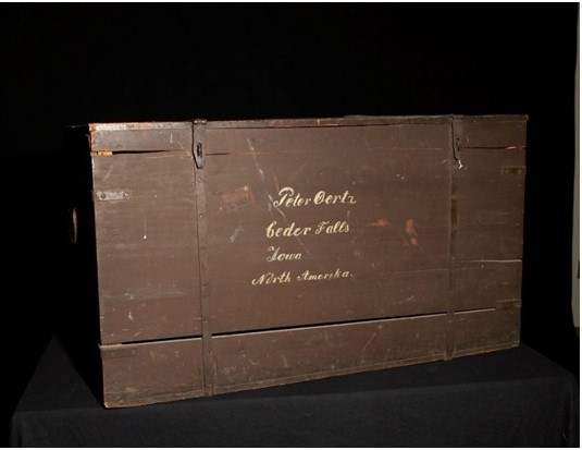 This trunk was used by by Peter Oertz, who immigrated from Denmark to Cedar Falls, Iowa, in the late 1870s. Like many other immigrants, Oertz had to fit all of his belongings into this trunk. Content can be used with the following standards: 3rd grade SS 3.27 Immigration and Migration in a lesson on Danish immigrant in Iowa and their contributions to the state. For any use other than instructional resources, please check with the organization that owns this item regarding copyright restrictions. |