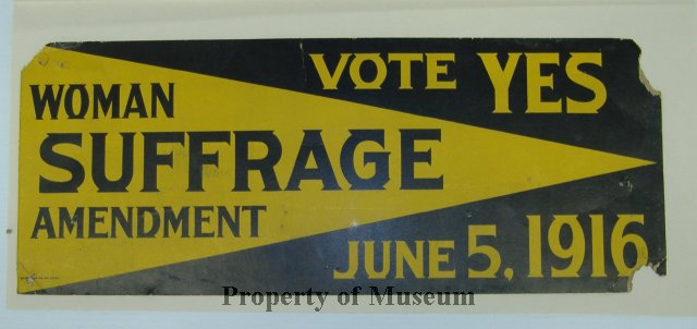In 1870, a bill that would have removed the word "male" from Iowa's voting qualifications passed the Iowa legislature; however, a controversial speech given by a British women's suffrage supporter named Victoria Woodhull derailed women's suffrage in Iowa and other states. On June 5, 1916, Iowa men voted on another effort to grant voting rights to Iowa women. This sign encouraged men to vote yes on the referendum. The 1916 referendum was voted down, and women did not receive the right to vote at that time. Women finally received the right to vote when Iowa became the 10th state to ratify the 19th Amendment was ratified on July 2, 1919. Content can be used with the following standards: 8th grade SS 8.25 Iowa Government, SS-U.S. 9-12.23 Iowans Influence U.S. History and SS-Gov. 9-12.28 Iowa Issues and Policy in a lesson on womens' fight for the right to vote. For any use other than instructional resources, please check with the organization that owns this item regarding copyright restrictions. |