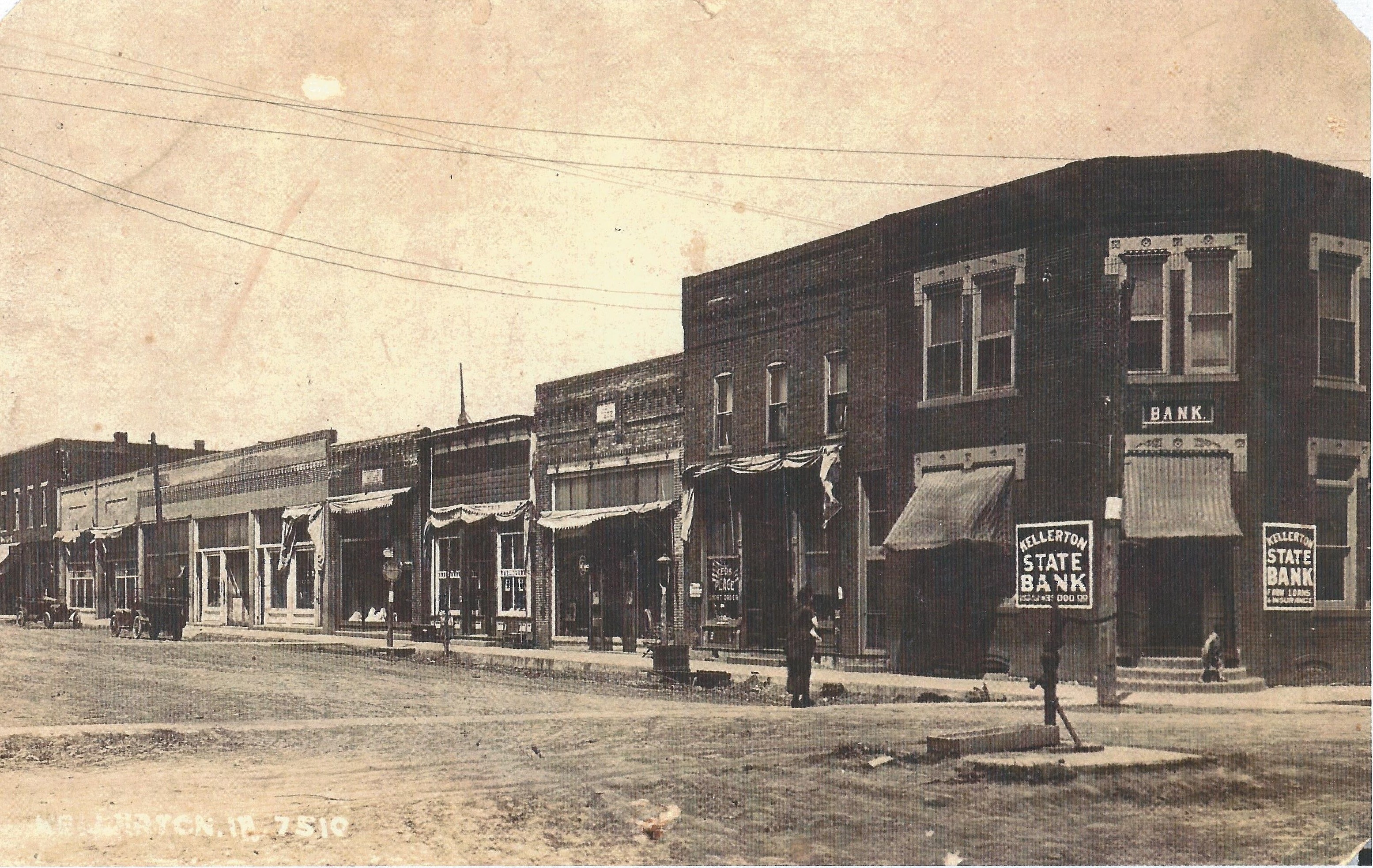 This photograph shows the east side of Decatur Street in Kellerton, Iowa. The Kellteron State Bank, located on the street corner, sold out to the Mount Ayr State Bank in 1931. The Mount Ayr bank used this building as a branch office for the next few years. Today, the old bank building serves as an apartment building. Content can be used with the following standards: SS-Econ. 9-12.24 Iowa Economy Impact Upon in a lesson on banks and businesses of Iowa in the early 1900s. For any use other than instructional resources, please check with the organization that owns this item regarding copyright restrictions. |
