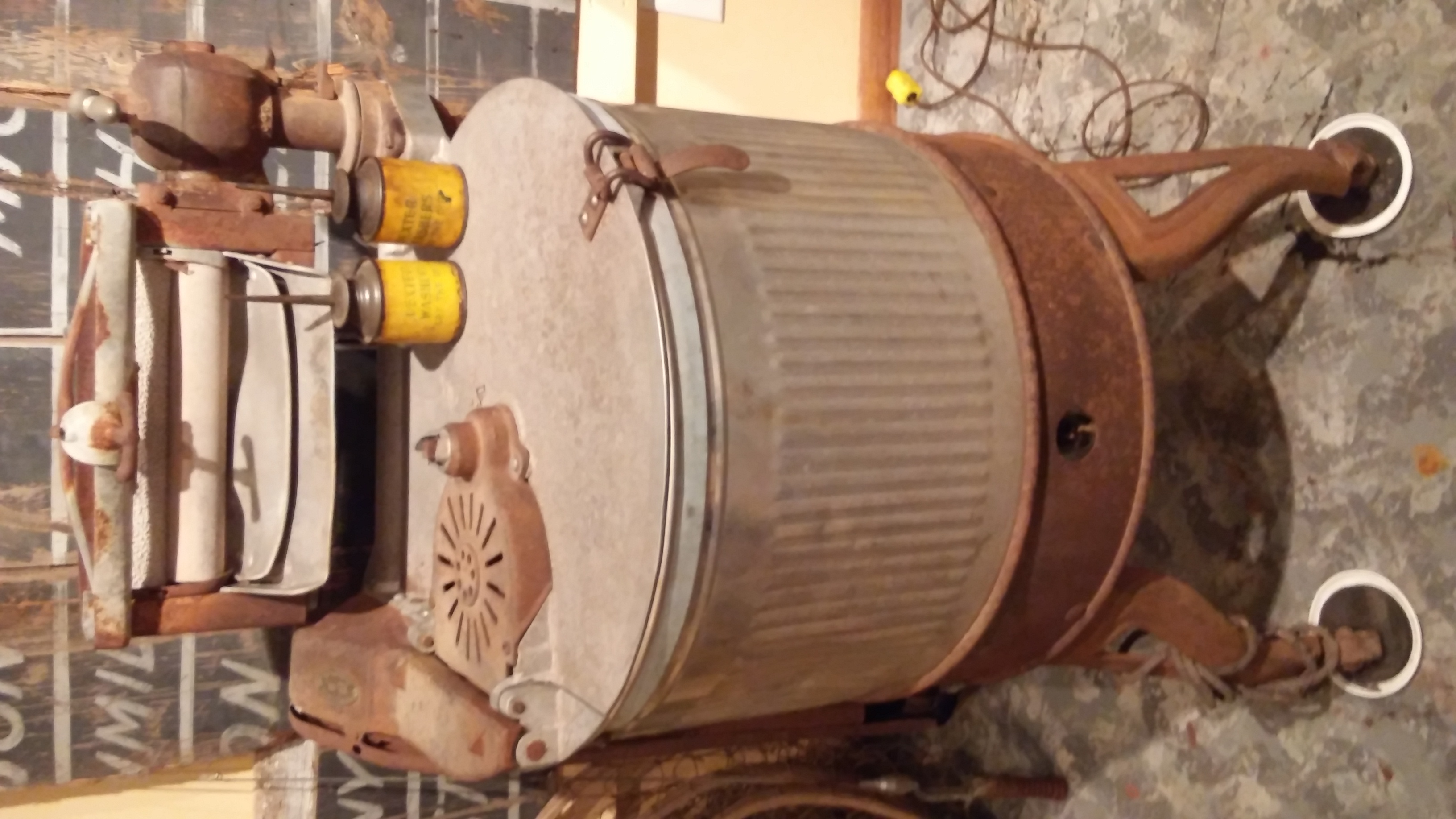 During the late 1800s, hand-powered wringer washers were the common type of washing machine used in households. Wanting to improve upon the model, W.H. George created two new versions called the Monarch and Billy Twister. The new model was built of wood slates held together by metal bands. The washers were sold country-wide for around $15 each. Dexter Laundry, the company started by George, continued to improve on their washers througout the early 1900s. The wooden washer eventually turned into a version made of zinc, copper and porcelain (picture provided). In 1908, Dexter Laundry relocated to Fairfield, Iowa where their business remains today. |