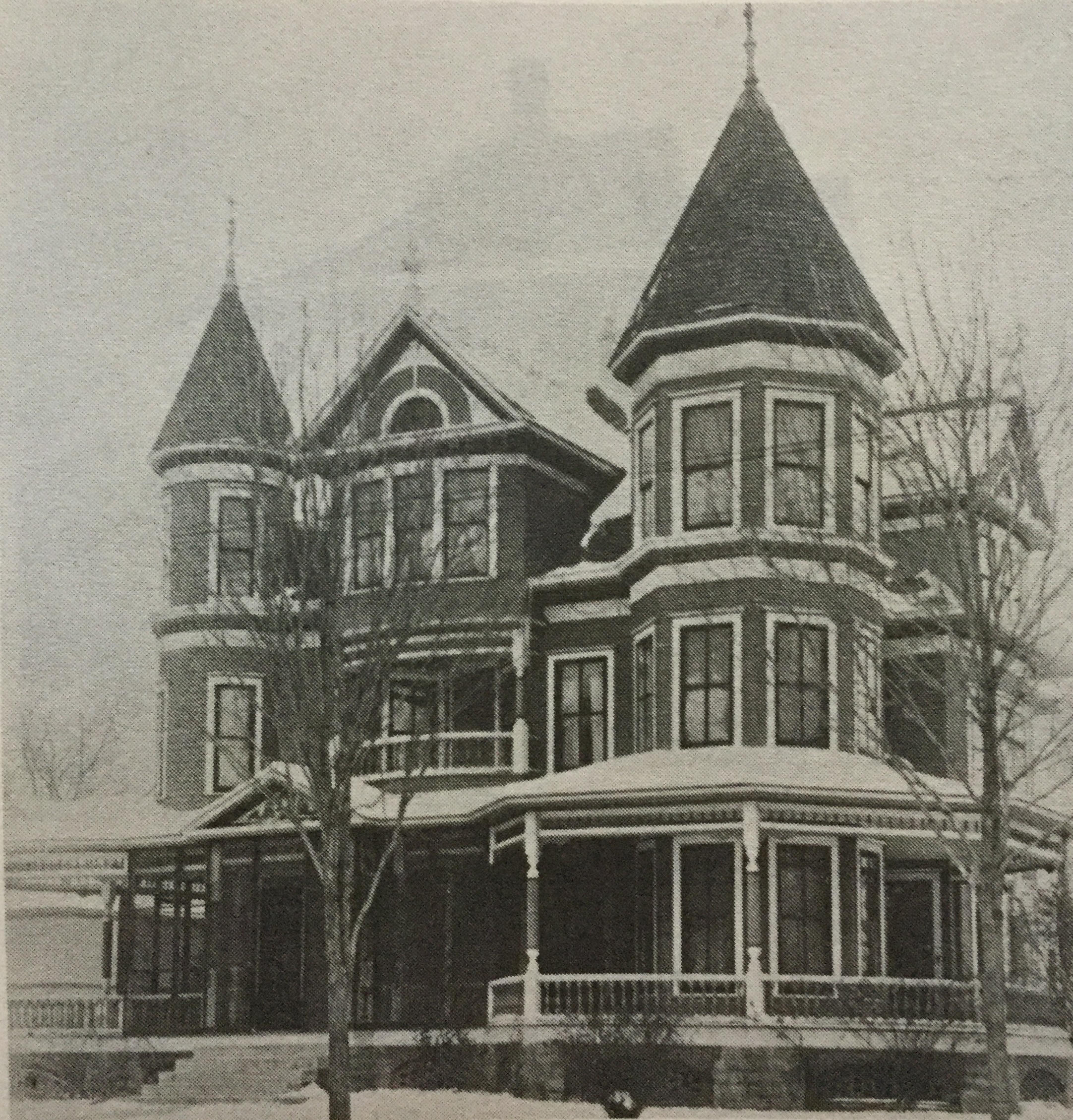 The town of Britt, Iowa was founded in 1870 by John T. Stoneman and William H. Lorimier, with the town becoming official in the county record on June 20, 1878. The first building of the town was the depot of the Chicago, Milwaukee, and St. Paul Railway in 1870, along with the first home being built on the southside of the railway tracks and owned by J.H. Burdick. As more residents moved to the town, the business sector expanded. The postoffice was built in 1870 with Robert Lattimore serving as postmaster, the first hotel in 1876 run under S.F. Benson and the first mercantile store in May of 1878 run by Thomas Daylor. The Armstrong house was built for Lewis Larson, the president of First National Bank in Britt and was built by John Victoria, a popular architect of the town. Constructed with two towers to beat Larson's merchant neighbor whose home had only one tower, the new home included architectural designs and elements of the time. The house included rooms with 10 ft. ceilings, double pocket doors, stained glass windows, a grand staircase, balconies and a full wrap-around porch. The home's basement is complete with a large coal cellar to supply the furnace, a cistern to collect rain water, a fruit cellar and a laundry chute. In addition to the family, two Norweigian maids also lived in the home. The women immigrated from Norway to work for the Larson family and helped with chores such as cooking and cleaning. A second stairway led from the second floor to the kitchen to avoid disrupting guests in the home. |