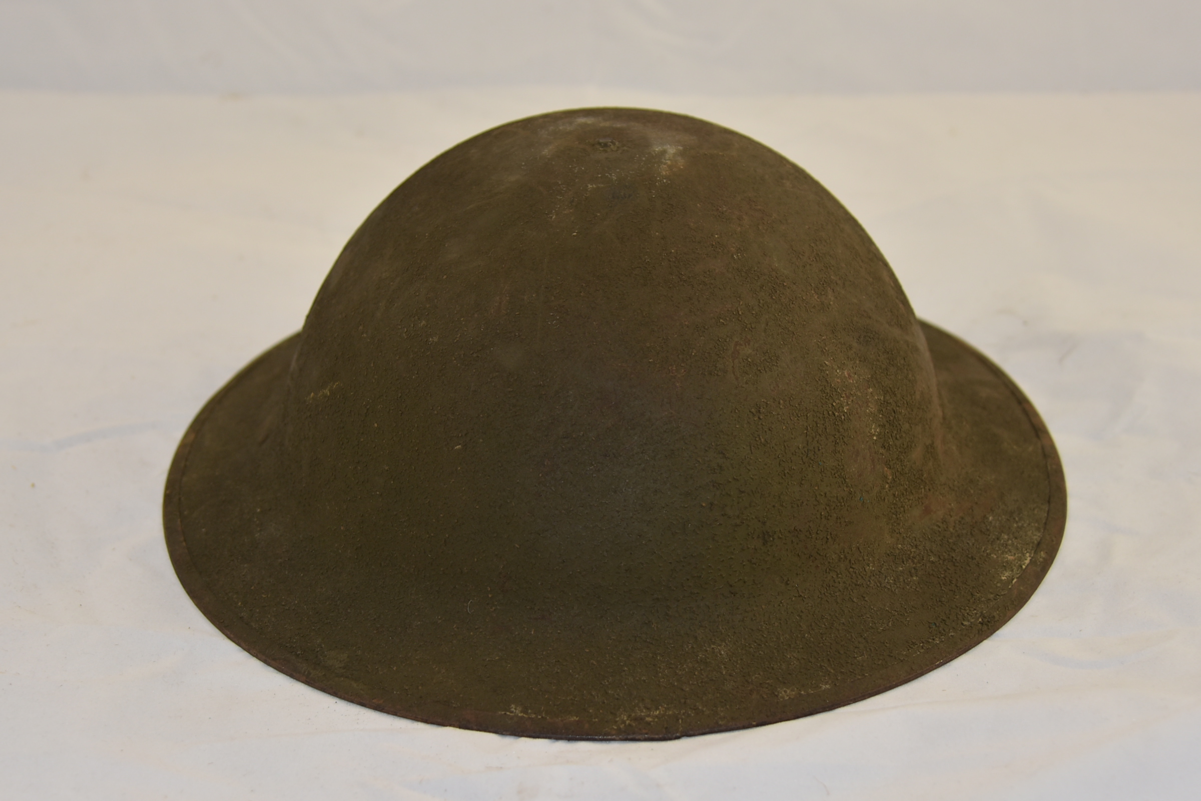 This is a Brodie-type steel helmet used by the United States armed forces during the First World War. It consists of a dome surrounded at the base by a wide brim in a circular shape. It is a single piece of folded steel. There is considerable patina on the piece, as is to be expected of a steel artifact of its age and provenance. The crest of the dome is pierced by several small screws which are designed to keep the internal leather lining attached to the steel body of the helmet. The interior of the helmet retains its original leather and cloth lining, as well as its net cushioning. The cloth straps that hold the lining in place is adorned at the interior crest of the dome by an imprinted star. At the rim of the helmet, the designation "ZF51" is engraved into the metal. There is considerable patina underneath the interior lining of the helmet. This type of helmet was originally patented in 1915 by John Leopold Brodie in London and was used extensively in the British armed forces during the First World War. It was adapted for use by the United States Expeditionary Force as the M1917 Helmet. The US initially purchased over 400,000 of these helmets from Britain for use in the war and eventually began to produce modified versions of it as the war progressed. In service until late 1940, the Brodie-type helmet was a staple of many countries' armed forces during the first half of the twentieth century. This content can be used with the following resources: SS.4.25: Technological Change This content can be used to educate students on the advancements made to military protective equipment during the First World War and how those changes impacted the lives of Iowan servicemen who fought in the conflict. For any use other than instructional resources, please check with the organization that owns this item for any copyright restrictions. |