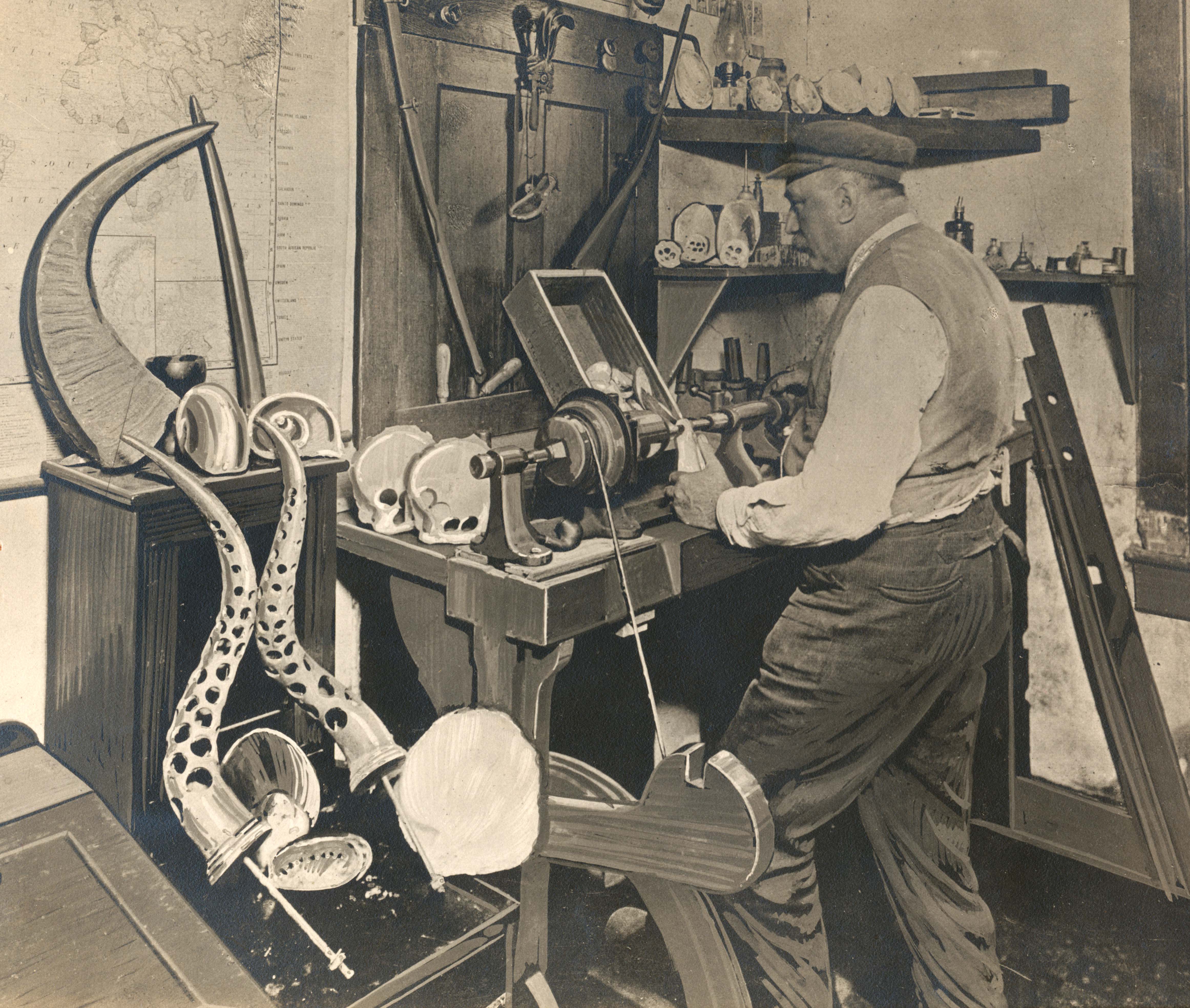 This photograph shows John Frederick Boepple working in his pearl button shop around 1891. Boepple, a German immigrant button maker, launched the pearl button industry in Muscatine in 1891, when he opened a small button shop. The button and clamming industries started small but quickly overwhelmed the town. Clamming became the Mississippi River's gold rush while large automated factories and shell-cutting shops employed nearly half the local workforce. By 1905, Muscatine made 37 percent of the world's buttons and earned the title of "Pearl Button Capital of the World." Boepple was ousted from his factory by his business partners around 1910. He then began buying shells for other companies. He also studied mussels for the Fairport Biological Station, founded by the U.S. Congress in 1908. In late 1911, Boepple stepped on a shell while working in an Indiana river and passed away the following year. Content can be used with the following standards: 2nd grade SS 2.24 Natural Resources, SS-W.H. 9-12.26 Iowans Influence World History and 4th grade SS 4.25 Technological Changes in a lesson on how the natural resources of Iowa led to businesses and new industries. For any use other than instructional resources, please check with the organization that owns this item regarding copyright restrictions. |