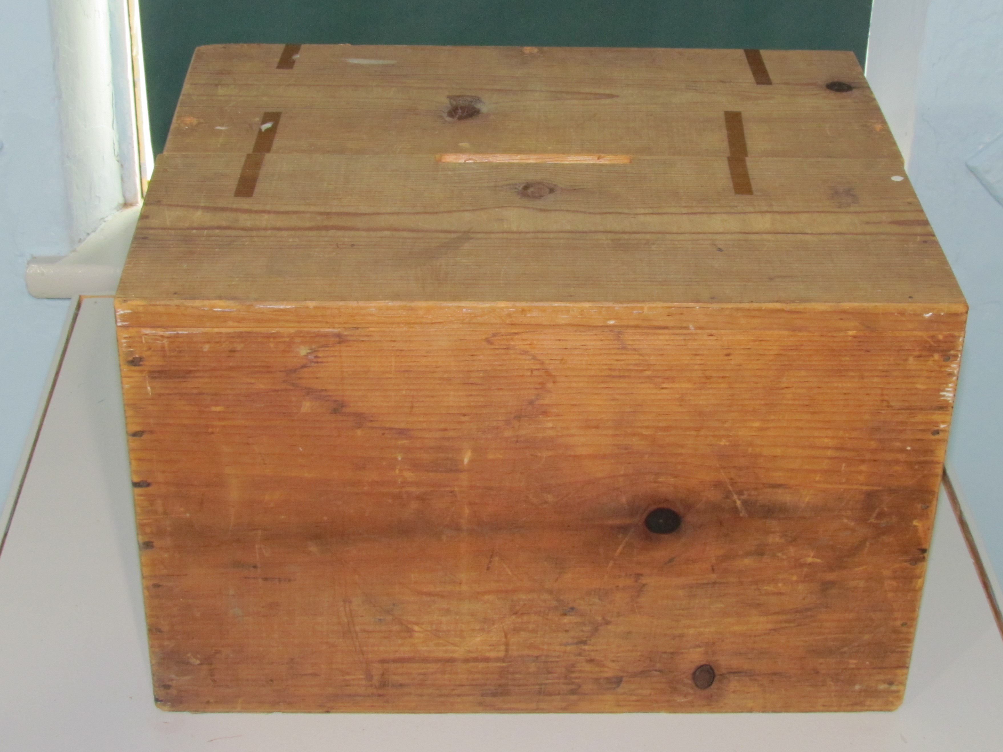 This ballot box was used in the Amana Colonies's vote over whether to keep or dissolve the community's communal structure. The members of the community voted in favor of dissolving the communal structure. This vote led the community to split into two organizations: the non-profit Amana Church Society and the for-profit Amana Society. The split became known as the "Great Change." Content can be used with the following standards: SS-Gov. 9-12.27 Unique Iowa Systems in a lesson on religious communities in Iowa and the structure of their society. For any use other than instructional resources, please check with the organization that owns this item regarding copyright restrictions. |