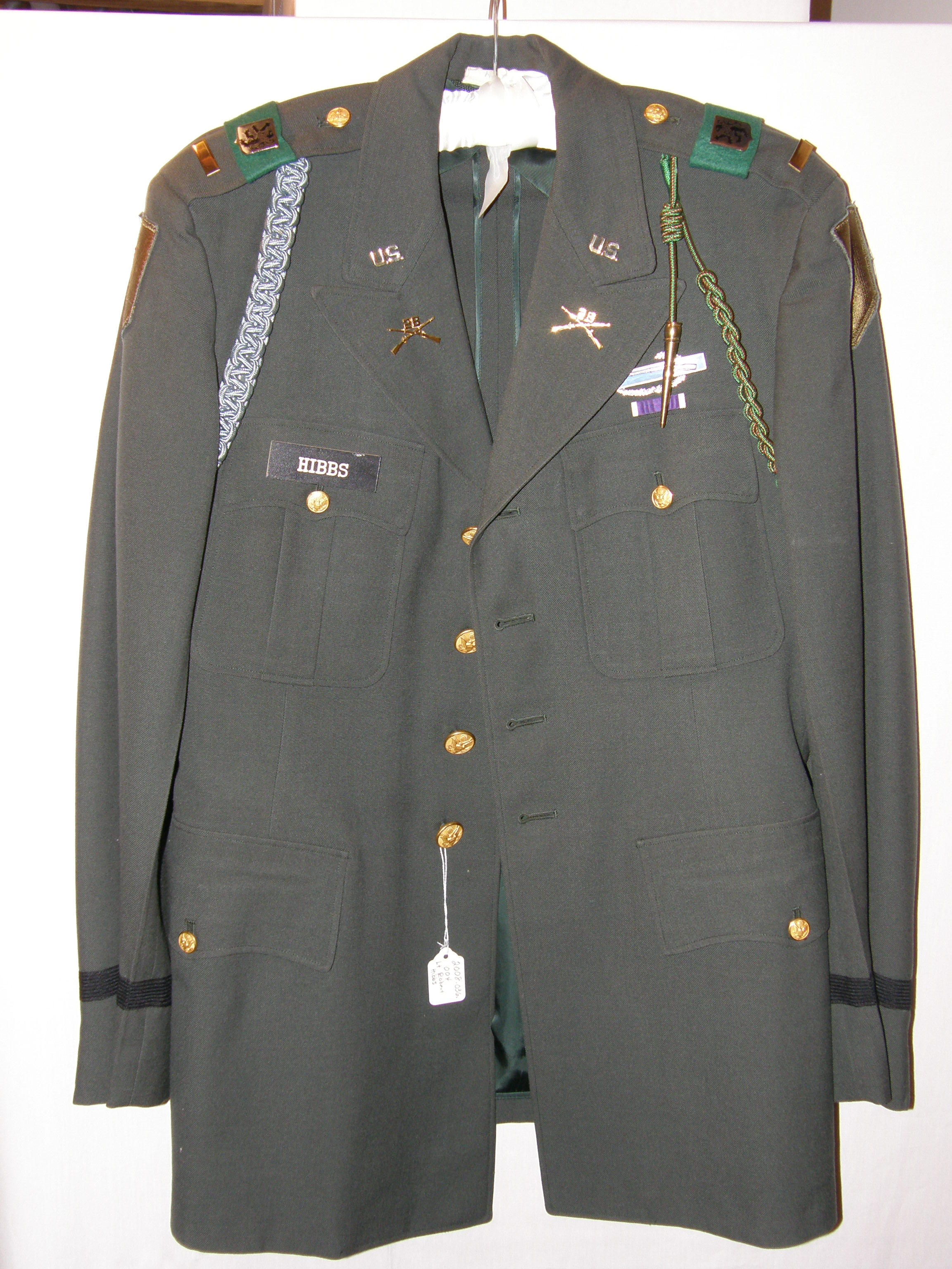 Pictured above is a U.S. Army military coat. This coat was worn by Lt. Robert Hibbs of the 2nd Battalion during the Vietnam War. Lt. Hibbs was in command of the 2nd Battalion on an observation mission to scout out Viet Cong companies. The company spotted an enemy company coming right for them. With Lt. Hibbs expertise, he prepared the men for an attack and emplaced two antipersonnel mines in their path. Once they got close, Lt. Hibbs detonated them. Lt. Hibbs was at the front lines to help his company retreat by throwing hand grenades at the charging Viet Cong. As the Battalion was retreating, they caught the second Viet Cong company by surprise. Lt. Hibbs charged right toward the Viet Cong and went to rescue the wounded US soldiers. While rescuing the wounded, Lt. Hibbs sacrificed himself so his comrades could escape. For his bravery and ultimate sacrifice, Lt. Robert Hibbs was given the Congressional Medal of Honor, the highest honor a soldier can receive in the American Military. For any use other than instructional resources, please check with the organization that owns this item regarding copyright restrictions. |
