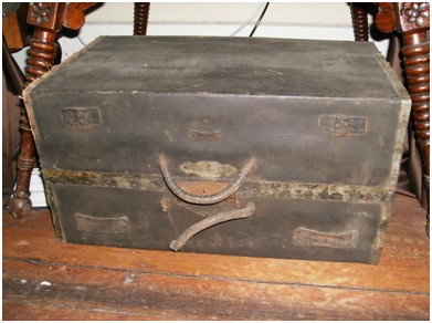 During the war, Cobbs enlisted with the One Hundred and Twenty-Sixth Illnois Volunteer Infantry. After serving two years, Cobbs was Point Lookout due to his bad eyesight. There, he became commissary of war prisoners. After the war, Cobbs returned home to Tipton, Iowa and found work in the dry goods businesss, who he later turned over to his sons when he retired. In January 1868, Cobbs married Eliza V. Boynton of Ohio and together, they had four children (F.B., Brett, Gertrude and Charles). A "grip box" was another term for a foot locker used by soldiers to store their belongings such as clothing, journals, letters from home and other items. Handles made the storage easy to carry and the box could be strapped onto trucks using ropes or leather straps. |